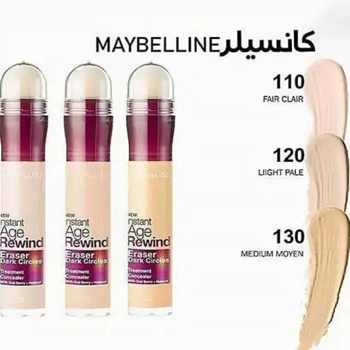 کانسیلر Instant Age Rewind از برند قیمت مناسب میبلین، آرایشی بینقص را به شما هدیه میدهد. دارای بافت فوق العاده نرم بوده و با رطوبت رسانی سطحی مخملی را روی پوست ایجاد میکند. دارای ماندگاری بالا تا 12 ساعت میباشد. ترکیب منحصر به فردی در فرمولاسیون این محصول استفاده شده که حس سبکی دارد و باعث سنگینی و چروک اطراف چشم نمیشود. استفاده از این کانسیلر باعث میشود تا با پوشانندگی تیرگی و پف اطراف چشم، چهره شما حالت جوانتری پیدا کرده و پوستتان ظاهر طبیعی و بهتری داشته باشد. کانسیلر میبلین Instant Age Rewind دارای اپلیکاتور منحصر به فرد و آنتی باکتریال بوده که استفاده از آن را راحتتر میکند.